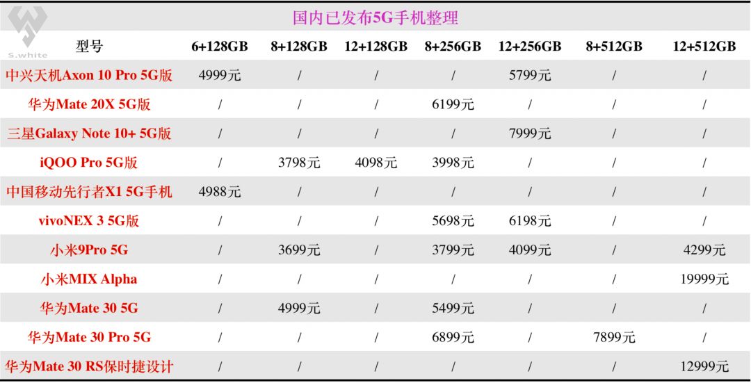 目前双模5G手机售价都在4999元及以上