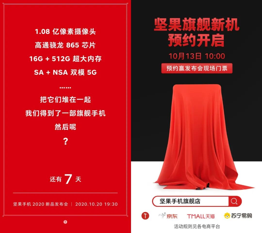 日前,坚果手机官宣 2020 新品发布会将于 10 月 20 日晚上 19:30 在北京五棵松· M空间举行。今天官方也发布了最新的预热海报。