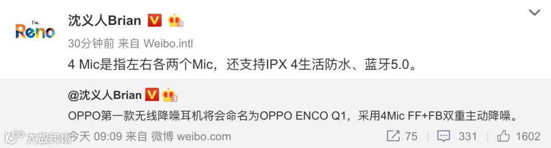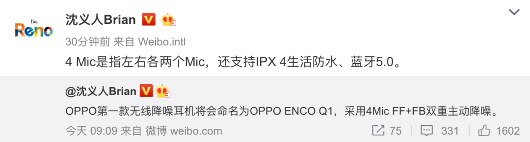 OPPO今日预热了旗下首款无线降噪耳机——OPPO Enco Q1无线降噪耳机。