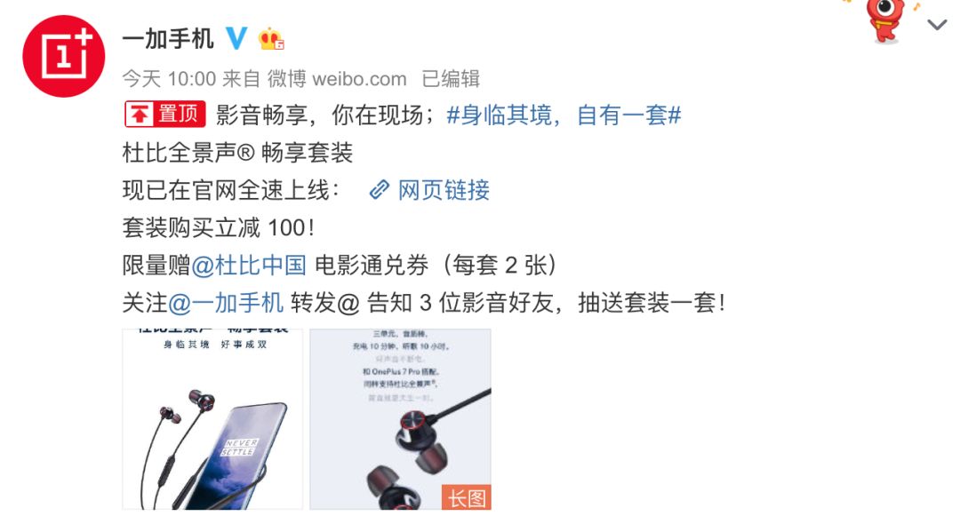 一加的杜比全景声畅享套装内含1台一加7Pro+1副一加云耳2,相比单独购买套装价可以便宜100块,适合计划同时购买手机和耳机的粉丝。