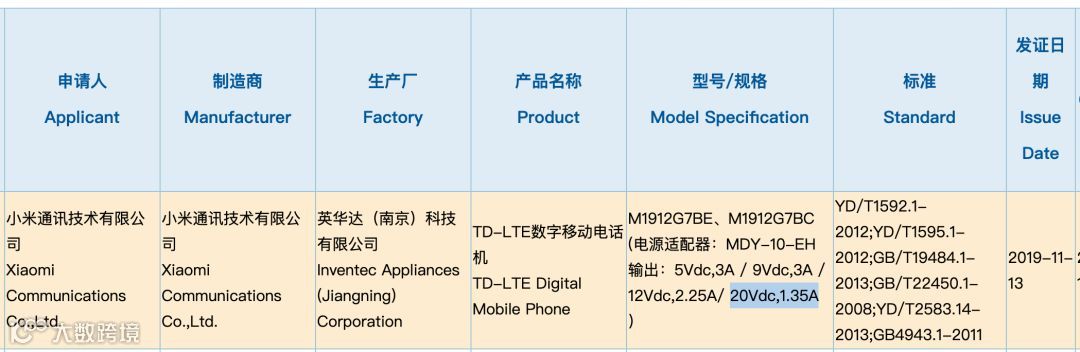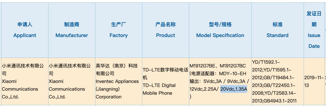 如上图所示,型号为M1912G7BE/C的2款小米新机(不支持5G)于昨日获得3C认证,标配小米9同款充电器,27W快充。鉴于小米CC9Pro已经配备30W有线快充,小米9Pro是40W快充,如果是小米新机没啥几率是低走,所以这2款似乎更有可能是Redmi K30系列。