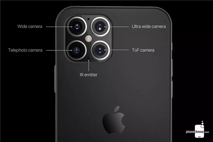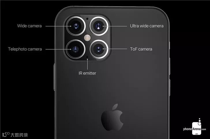 如上图所示,苹果iPhone 12整体外观依然类似于iPhone 11/Pro/Max,但刘海屏更小,同时背部升级为了浴霸四摄,闪光灯在正中间。整体依然略丑,难以直视。。。