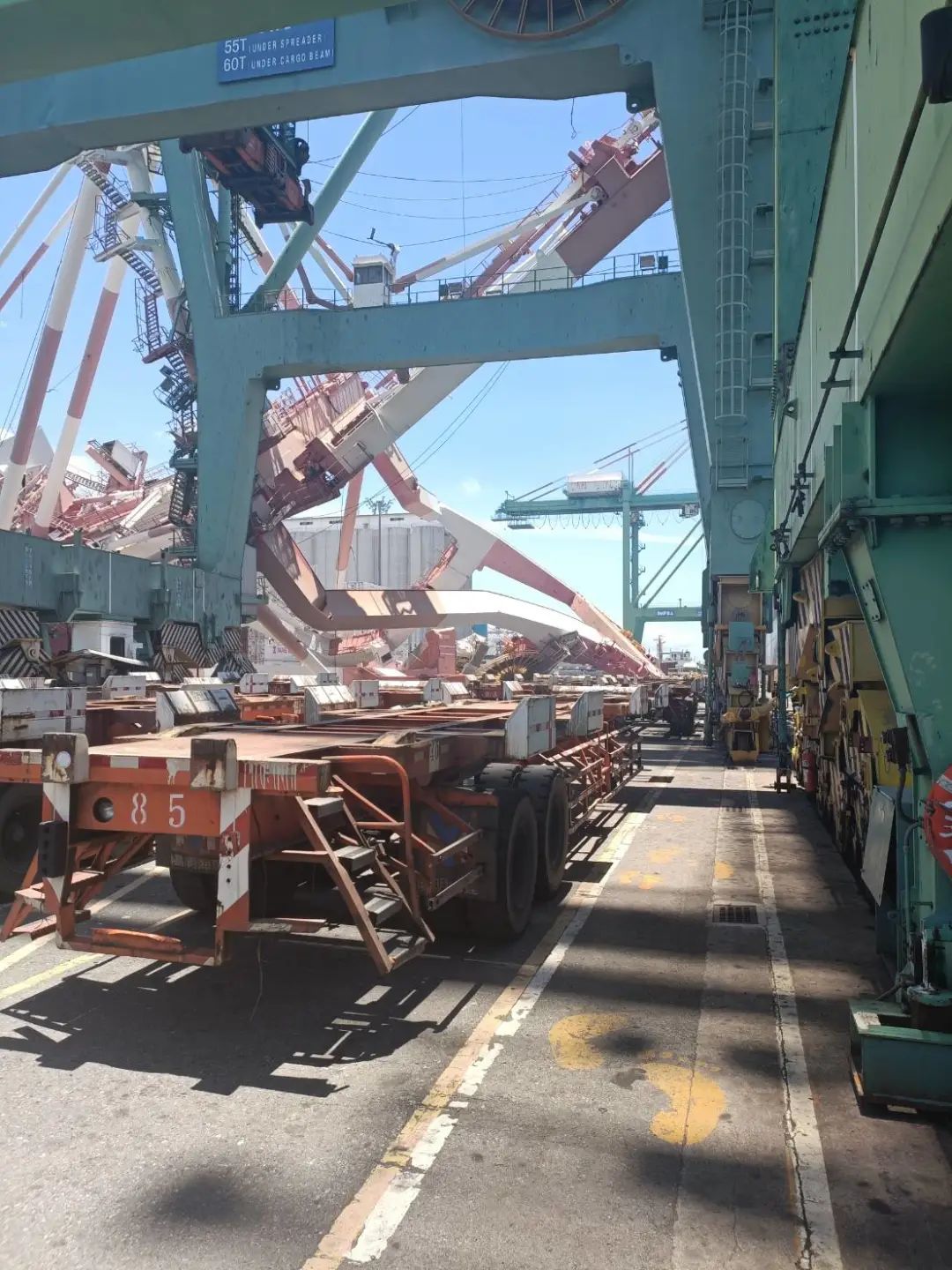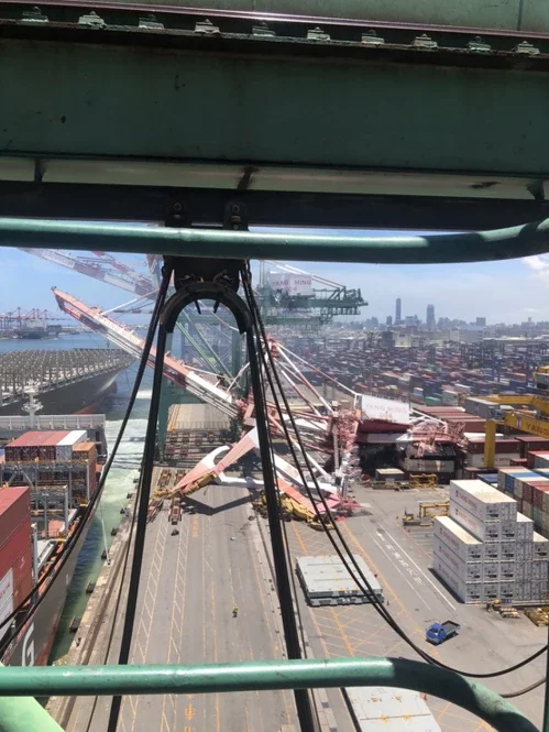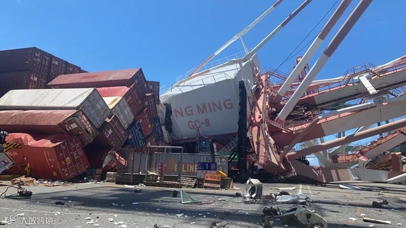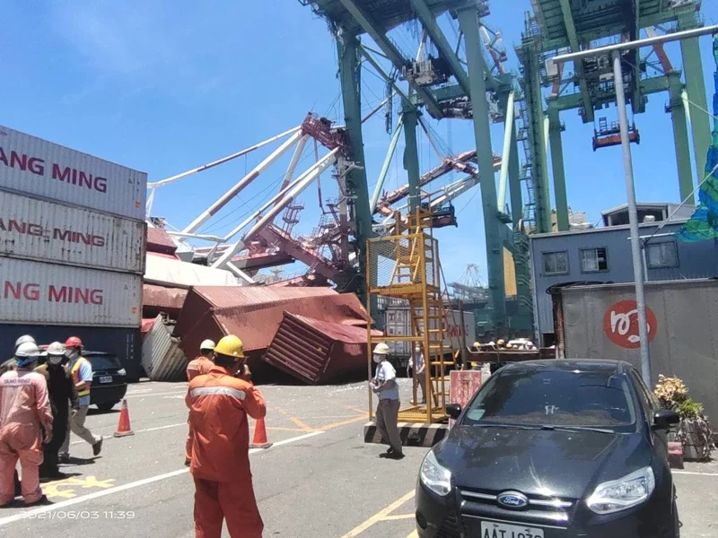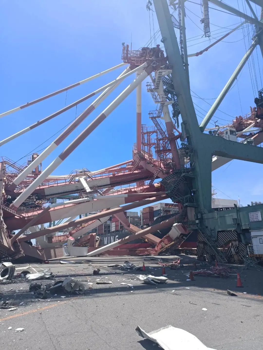 报道称,被撞倒塌及严重损坏的2座桥式起重机造价约6亿元新台币,受损货柜详细损失金额需再调查。
