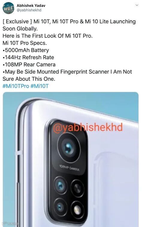 至于背部,曝光的真机来看,小米10T/Pro 提供 淡紫、银灰、蓝色 至少3个配色,其机身右侧是音量键+LCD指纹电源二合一键,整个后置相机模组和vivo/iQOO的大眼设计非常像,具体后置应该是四摄,但也不排除三摄的可能性。