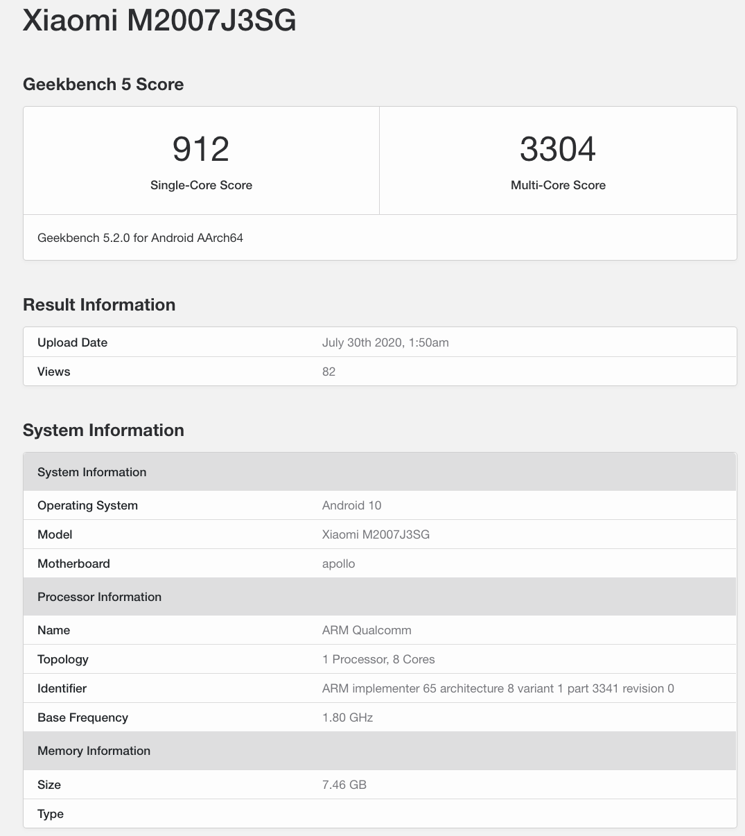 小白去Geekbench跑分库搜了下, 发现这款机在7月30日就已经现身了,代号Apollo。据@数码闲聊站 爆料称其面向海外,原本国内有个64MP版本抗争iQOO Neo3,但现在说不好。所以国内到底会不会有看情况吧。