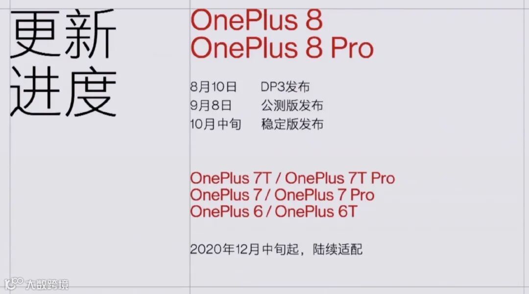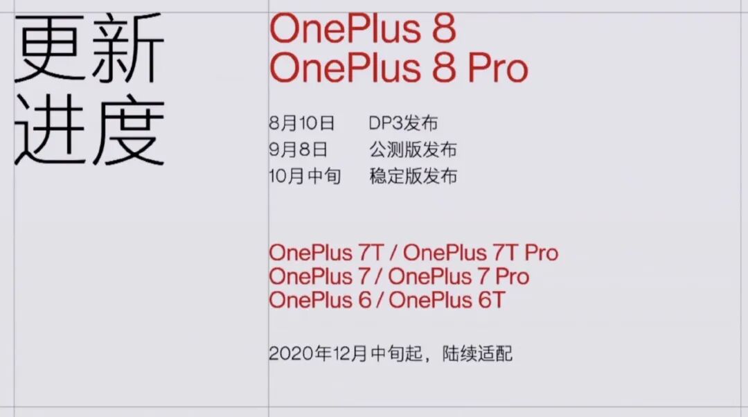 至于一加氢OS 11的推送时间,官方表示将于今天更新一加8/Pro的开发者预览尝鲜版,9月8日公测,10月中旬推稳定版。至于一加6/6T/7/7Pro/7T/7T Pro六款机型的用户将于12月中旬起,陆续适配。