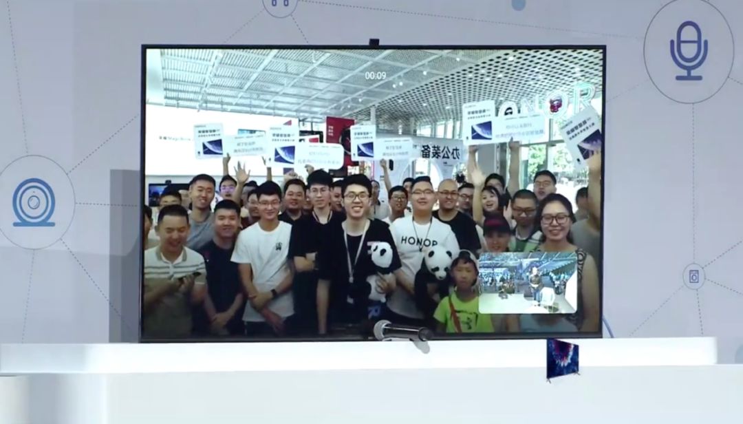 今天下午,荣耀正式发布了「荣耀智慧屏」,其中主打卖点之一是AI升降可伸缩摄像头,赵明在东莞的发布会现场还演示了与成都Life店进行视频聊天。