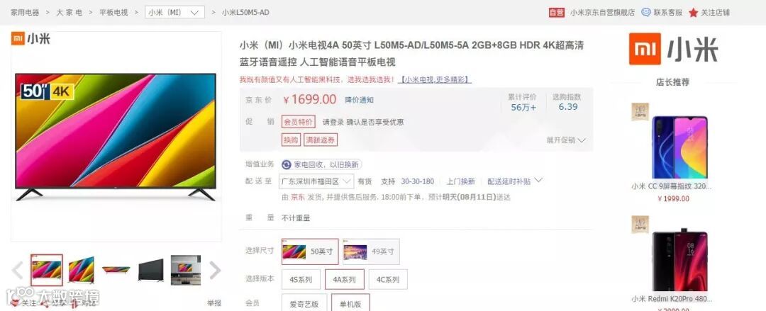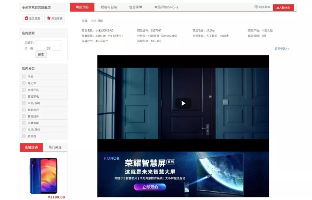更有意思的是,就在荣耀智慧屏刚发布不久后,有小伙伴在京东自营 小米电视 的页面详情介绍里看到了荣耀智慧屏的广告,东哥不够意思啊