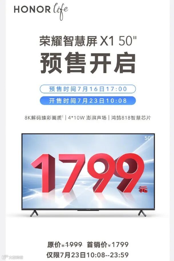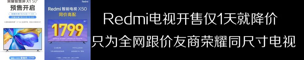 其中荣耀智慧屏昨天跟大家简单聊过,荣耀智慧屏 X1 50英寸版首销价:1799元。友商Redmi也在第一时间进行了跟价。