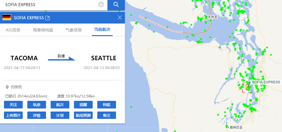 据船公司公告,服务于跨太平洋航线的集装箱船“Sofia Express”轮,在塔科马港口执行任务时,船上一名机组人员COVID-19检测结果呈阳性。