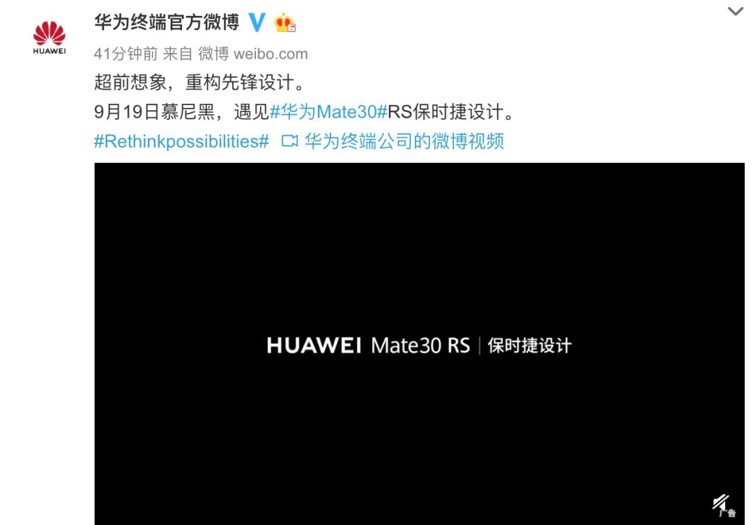 日前,华为宣布将于9月19日发布华为Mate 30系列,近日官方也在持续预热,除了华为Mate 30/Pro外,还将带来华为WatchGT2智能手表和华为Mate 30 RS保时捷设计版。