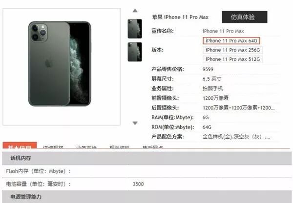 首先是电池容量,天翼4G产品库显示:iPhone 11:电池3110mAh;iPhone 11 Pro:电池3190mAh;iPhone 11 Pro Max:电池3500mAh;作为对比去年XR是2942mAh;XS是2658mAh;XS Max是3174 mAh。