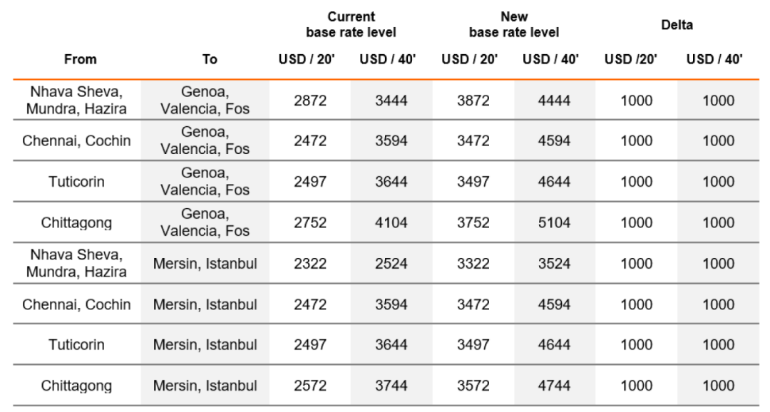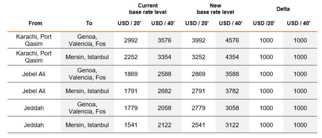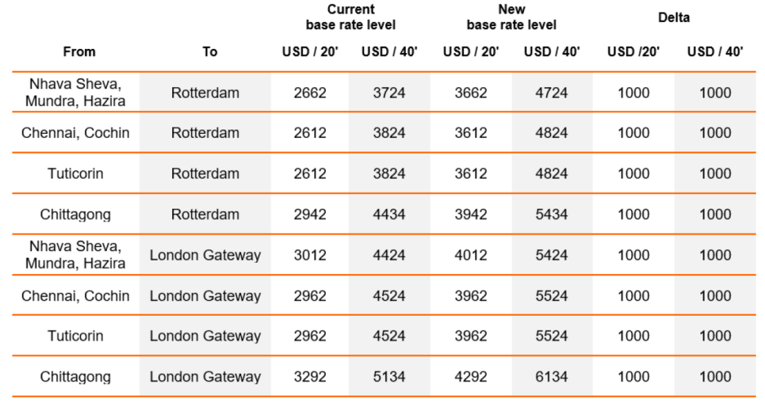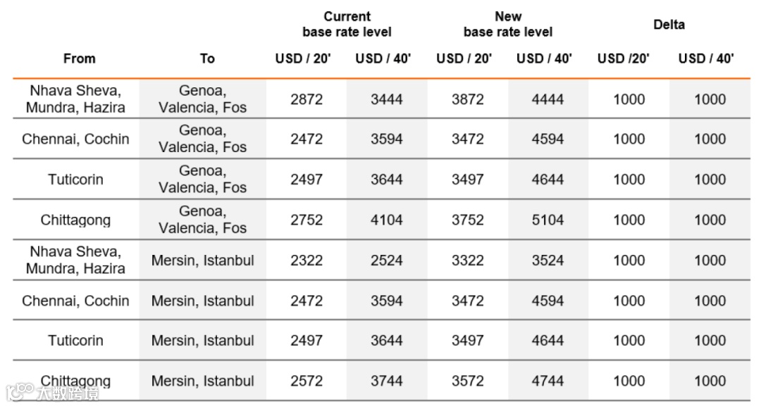赫伯罗特集装箱公司近日宣布,从印度次大陆、中东、巴基斯坦到北欧和地中海,提高20 '和40 '通用集装箱的海运费率,包括高立方集装箱。
