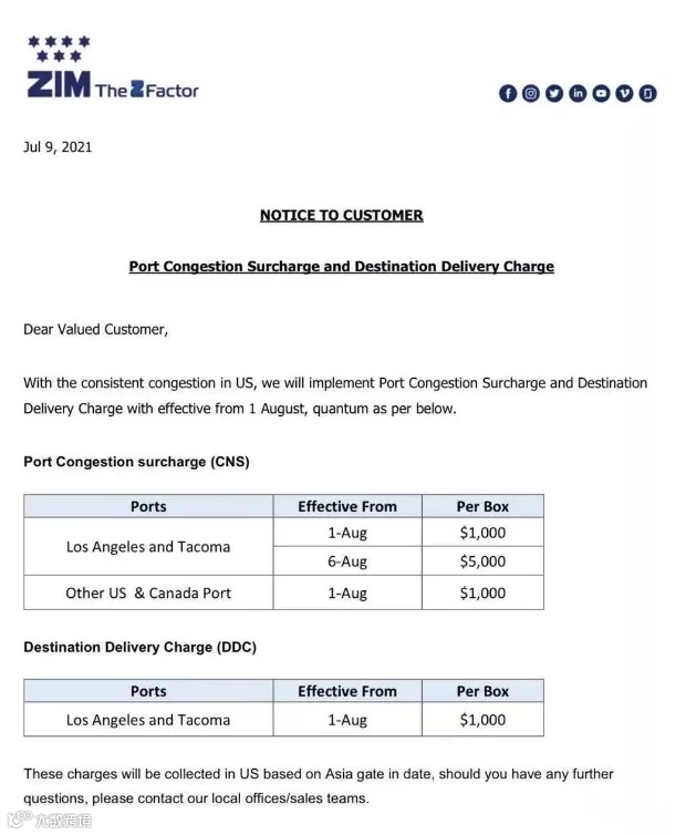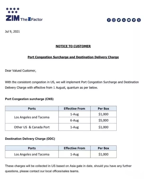 8月1号起,以星开始收取目的港拥堵费、交货费。