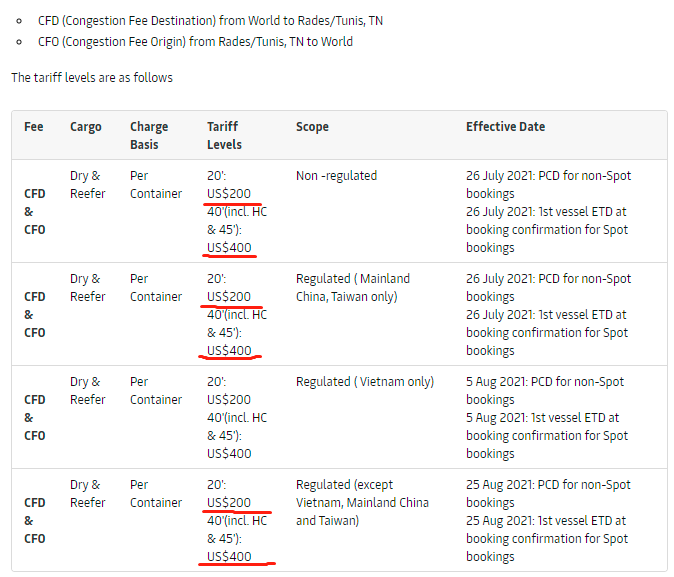生效日期:2021年09月01日 (目的港卸船日)注意:以上附加费以货物 9 月 1 日目的港卸船日开始生效,适用于所有报价和柜型。