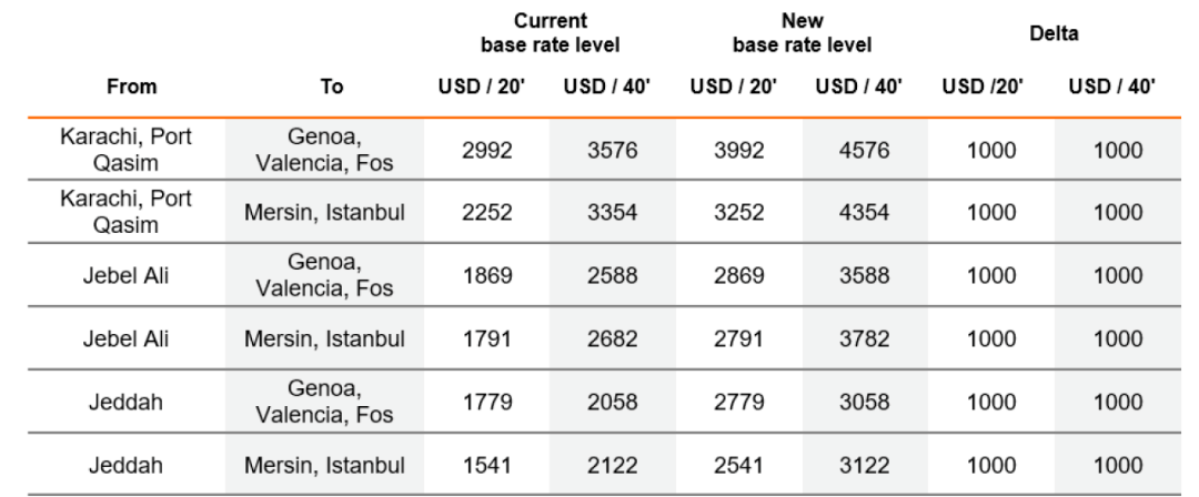 8月1日起,以星航运开始收取目的港拥堵费、赫伯罗特征收旺季附加费;