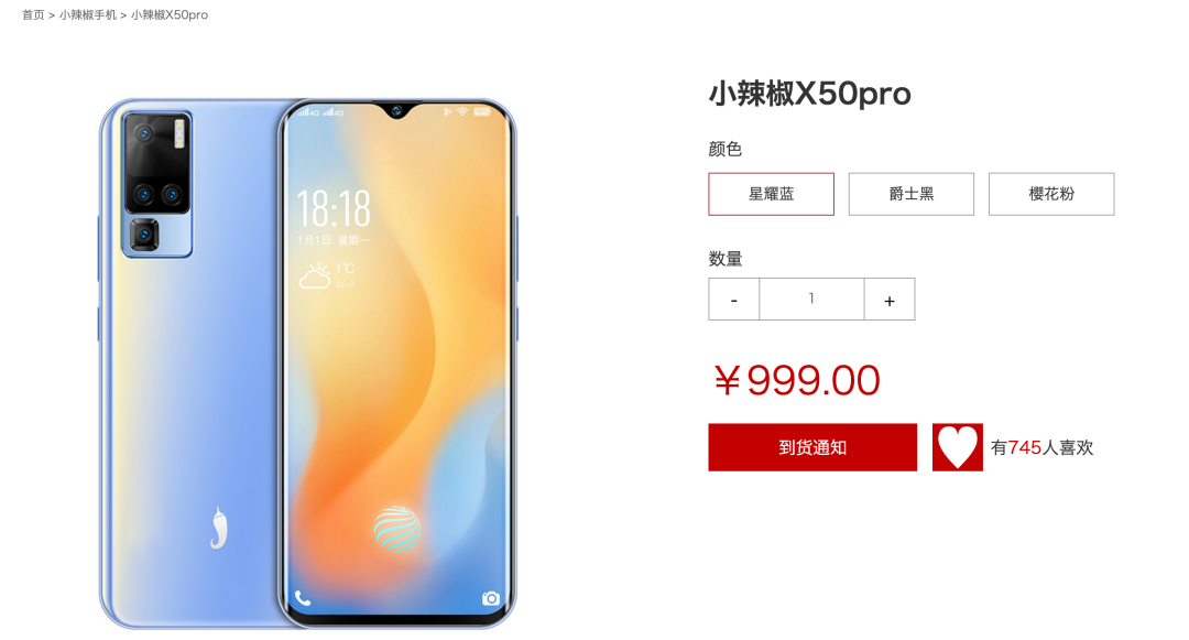 如上图所见,近日小辣椒手机官网上架了一款小辣椒X50 Pro系列。