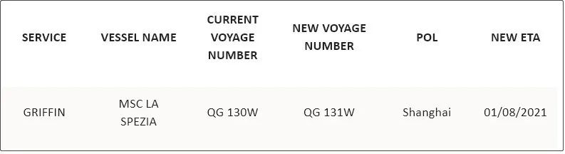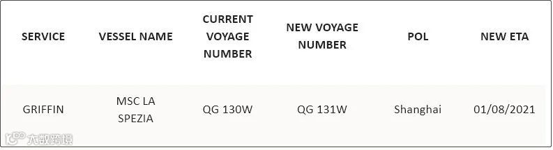 此外,该环线的“MSC LA SPEZIA”轮将从第29周“顺延下滑”一周至第30周,修订后的ETA将于2021年8月1日到达上海,以应对当前充满挑战的市场形势。