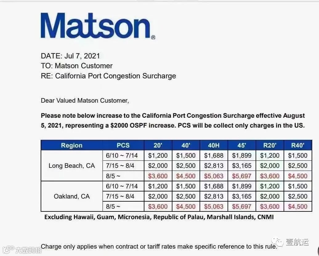 其中,美森轮船上周宣布,从8月5日开始对美西港口再次增加港口拥堵费2000美元每柜,而这已经是6月10日开始推涨的第三步港口拥堵费,三次港口拥堵费叠加之后,其中45尺柜更是高达5697美元!!