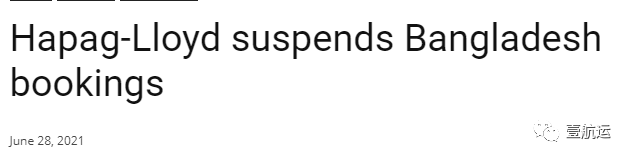 赫伯罗特预计此情况将至少持续至7月底,并宣布暂停接受从新加坡运往吉大港的订舱。