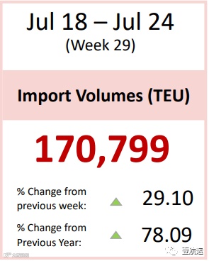 来自洛杉矶港口方面的最新数据显示,在创出单月吞吐量超100万标箱的历史新高之后,洛杉矶下周单周进口货轮也将突破17万标箱,比前一周上升29.10%,比去年同期更是飙升78.09%