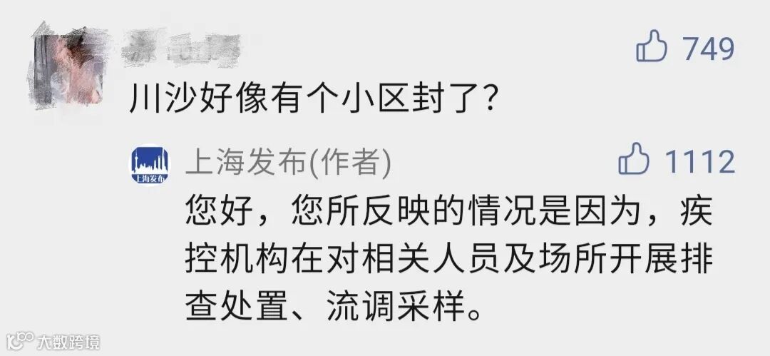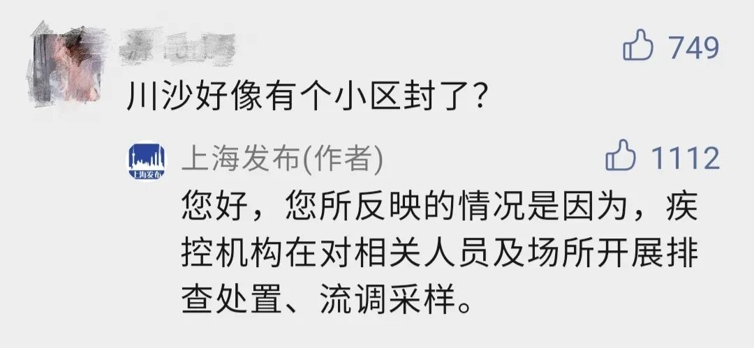 另外,对于浦东川沙一小区封闭管理的传闻,上海发布在评论区也作出了回应:疾控机构在对相关人员及场所开展排查处置、流调采样。