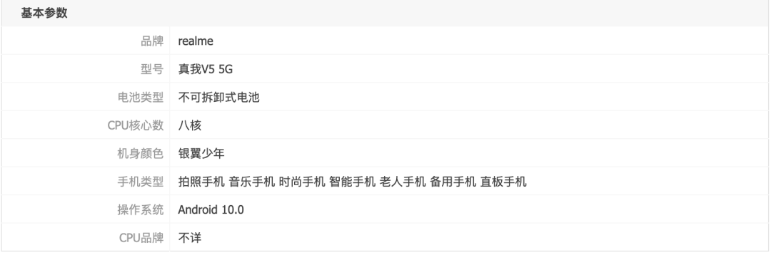 另外有网友 表示在昨天晚上截图时商品详情页还写了处理器,realme V5搭载联发科天玑720。据了解天玑720发布于上周,GeekBench 5跑分单多核分别为513/1659,是目前定位最低的5G SoC,由OPPO A72首发,预计realme V5也将配备高刷,价格嘛势必比OPPO便宜些,或许不到1500元?🤔