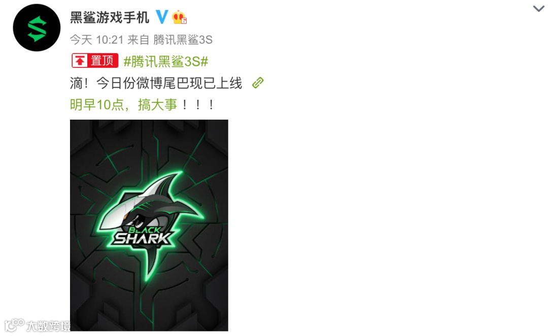 官博今天发文表示明天早上周一上午10点搞大事,应该会正式宣布黑鲨3S的发布时间。