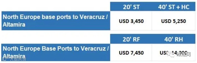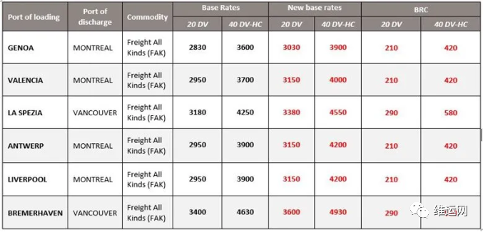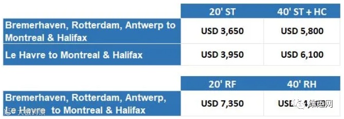 地中海航运公司(MSC)将采用以下从欧洲到加拿大和墨西哥的各种(FAK)费率。