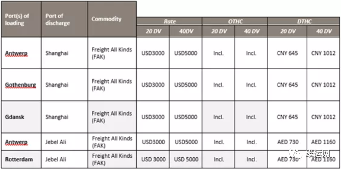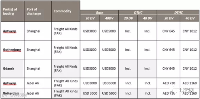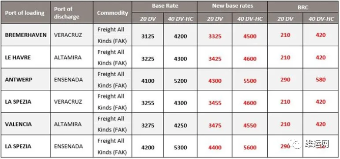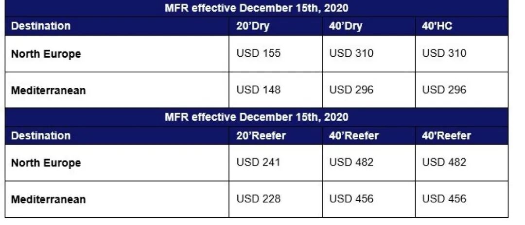 此外,MSC已从2020年12月1日起进行以下费率调整,直至另行通知,但不超过2020年12月31日。