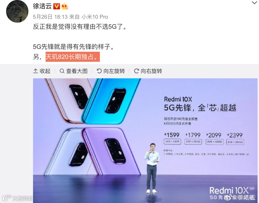 值得一提的是,其搭载的联发科天玑820处理器,目前市面上就两款机型搭载,正是Redmi 10X和Redmi 10X Pro,当时官方人员还曾表示Redmi有820独占期,不知道这个独占期什么时候结束。