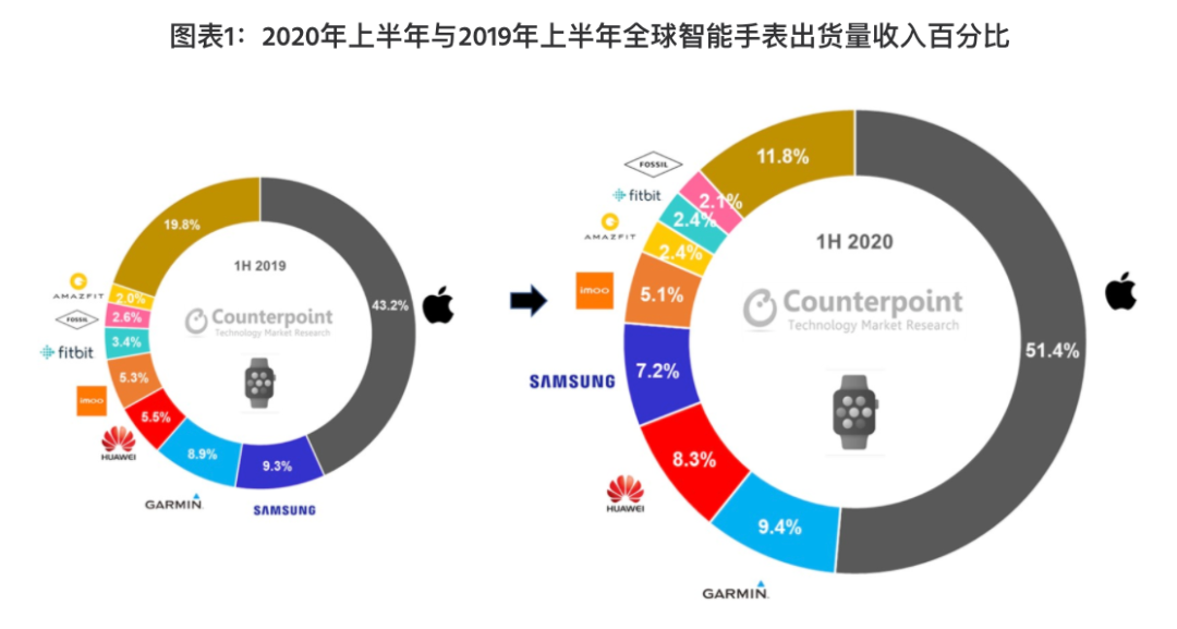 作为补充,Counterpoint发布的2020年上半年全球智能手表市场报告,imoo(小天才的海外名)市场份额占比5.1%,位列第5名。而小天才和OPPO也多少有一些亲属关系,俩品牌都离不开步步高。