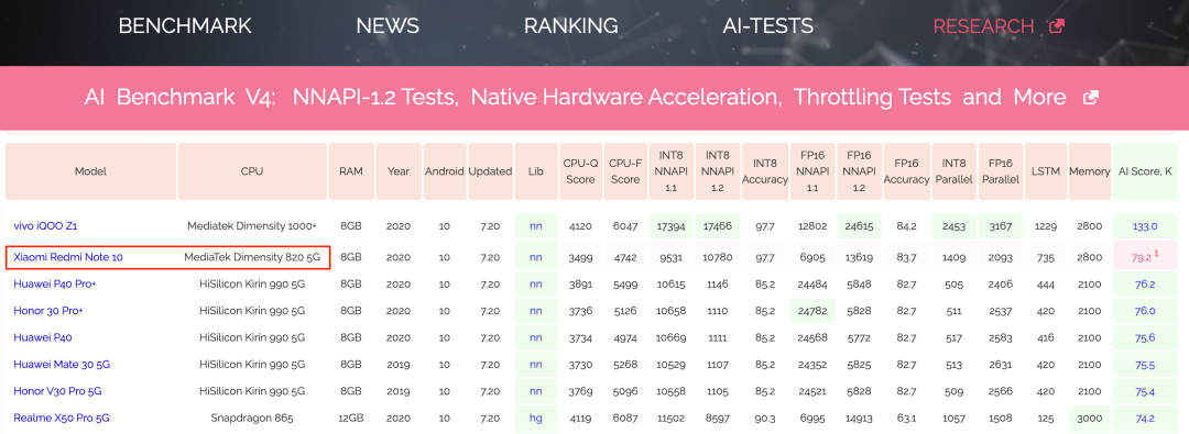 7月份尚未发布的新机应该就剩几款游戏手机,而8月份新机应该也不少,除了官宣8月5号的三星Note 20系列,Redmi K30 Ultra和小米10系列超大杯应该也会到来,只是没想到的是近日AI跑分网站ai-benchmark出现一款名为「Redmi Note 10」的新机。