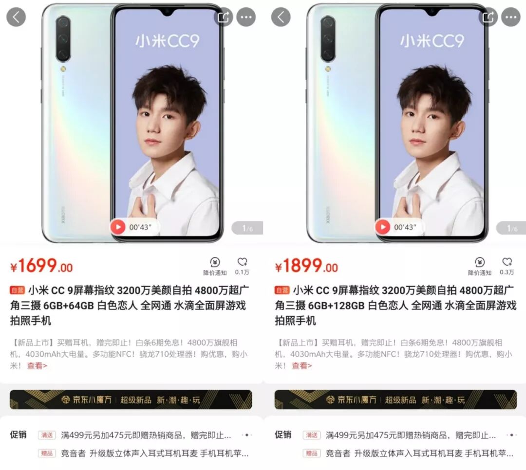 首先是小米CC9全系降价100元,其发布于7月2日,6+64/128GB发售价为1799/1999元。配置有:6.39英寸水滴屏+第7代屏幕指纹,骁龙710,4030mAh,18W快充,前置32MP,后置三摄索尼48MP+8MP超广角+2MP景深,支持NFC、红外遥控,有3.5mm耳机孔,对标Nova系列,主打拍照美颜,支持暗光自拍、Mimoji萌拍能功能。