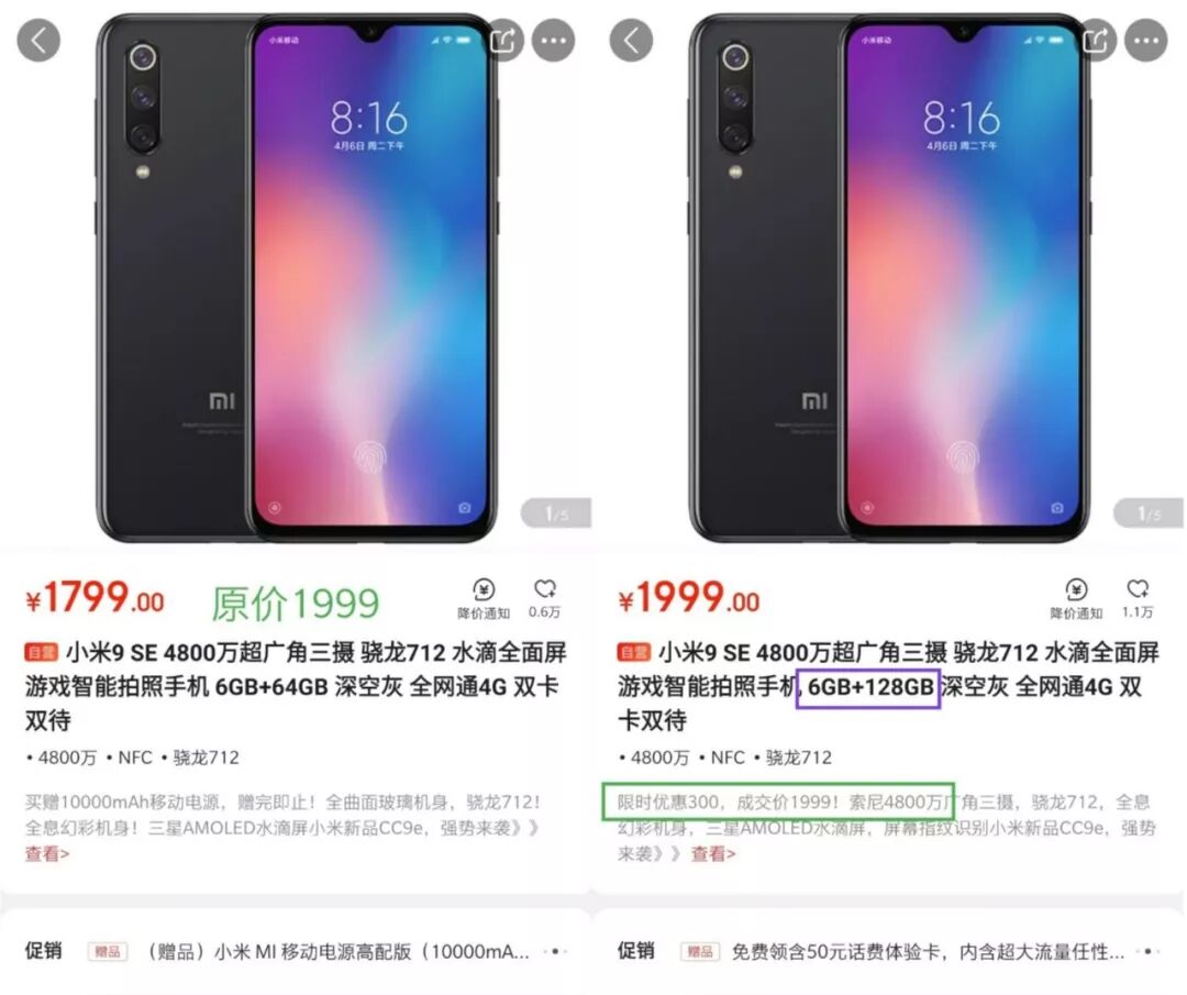 小米9SE 6+64GB降价200元并送充电宝,6+128GB版降价300。配置有:5.97英寸水滴屏+第5代屏幕指纹,骁龙712,前置2MP,后置48MP+8MP+13MP,3070mAh,18W快充,NFC、红外遥控,无3.5mm耳机孔和无线充。