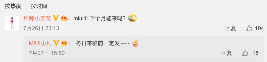 其中小米MIUI体验总负责人 小凡透露“MIUI 11一定会在冬日来临前发布”(今年立冬是11月8日),而雷军表示下半年会有5G产品发布,除了小米MIX 3 5G版,如果正常推进旗舰机,预计MIX 4会和MIUI 11一起到来,就看是9月还是10月份了。