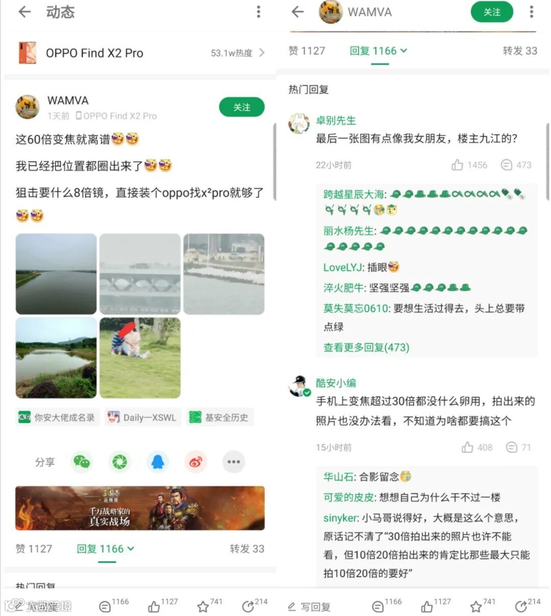 由于电视剧都不敢这么拍,在该帖发酵后不少人都质疑该事件是Find X2 Pro 60倍变焦的一次营销,酷安和原帖主纷纷发文自证清白。