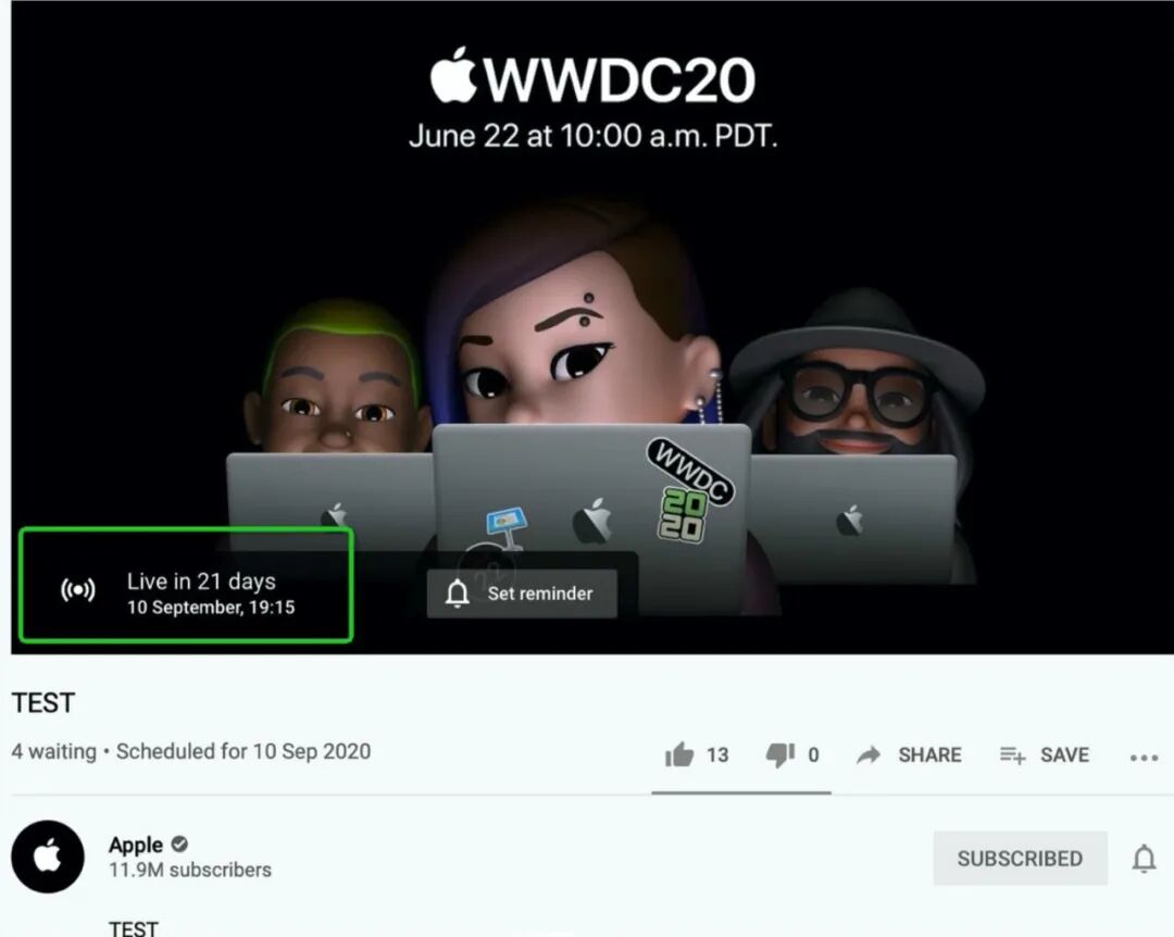 另一边就是苹果的消息了,iPhone 12系列新机爆料反反复复,外观和配置等其实已经确定,就是发布时间不好说,昨晚有手快的网友发现苹果官方在YouTube发布了一条直播测试链接,应该是为iPhone 12系列作准备。