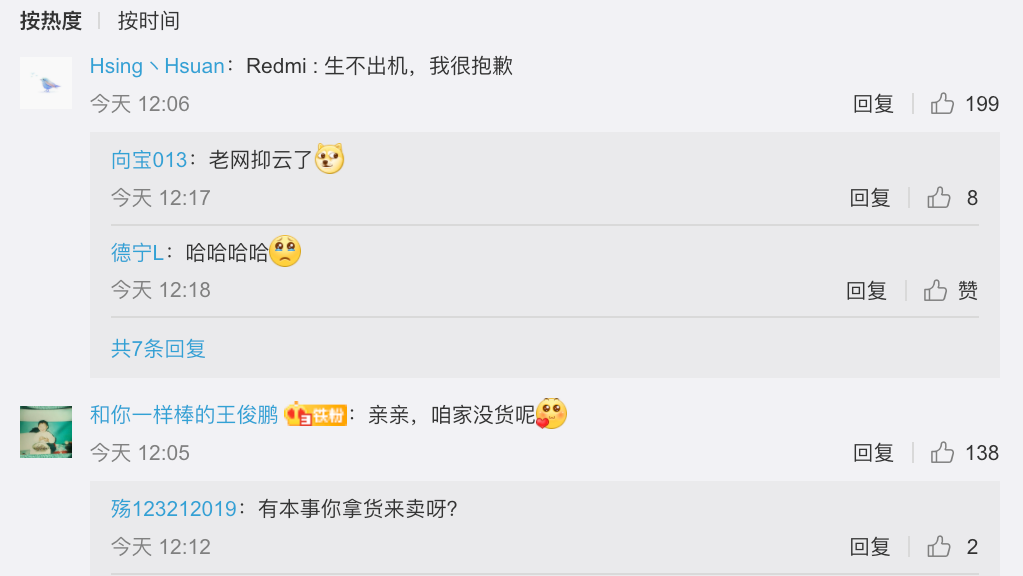 Redmi官方微博下也出现了不少用户没抢到的留言。