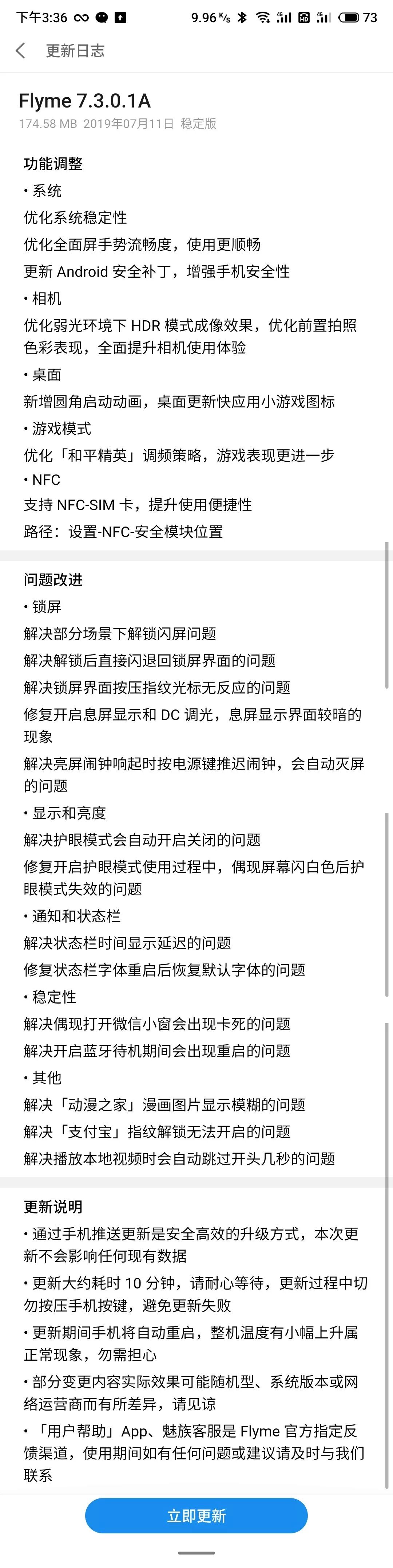 值得一提的是,今天魅族16s还推送了Flyme 7.3.0.1A安装包,对系统、游戏、相机、NFC等很多方面都进行了优化和更新,体验大幅提升~