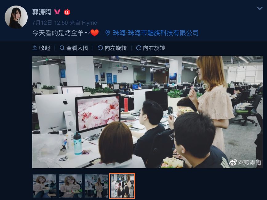 魅族UI设计师郭涛陶昨日在微博中晒了一张日常照,没想到有细心的网友放大图片后扒出了很多细节。