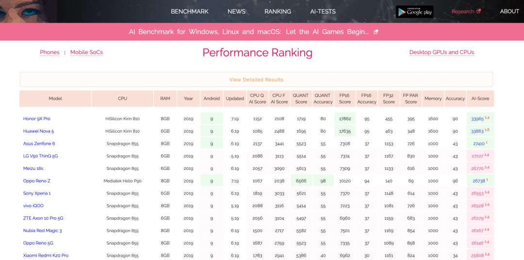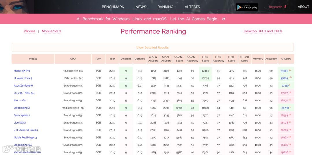荣耀9X系列还没发布,跑分倒却先行一步,登上AI跑分网站AIbenchmark的排行榜第一。而且有意思的是,其作为麒麟810的第二款量产机型,AI跑分竟比Nova 5还要多出几分。