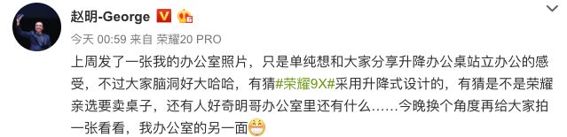 如上图所见,是荣耀赵明分享的办公室照片,被网友柯南式挖出来的有:被狗头挡住的荣耀电视、荣耀MagicBook新品笔记本、未激活的Windows、写有“盘古”两个字的书签、疑似双摄的荣耀9X真机谍照。总体来说,新品挺多,但说到底新机才是我们关注的重点。