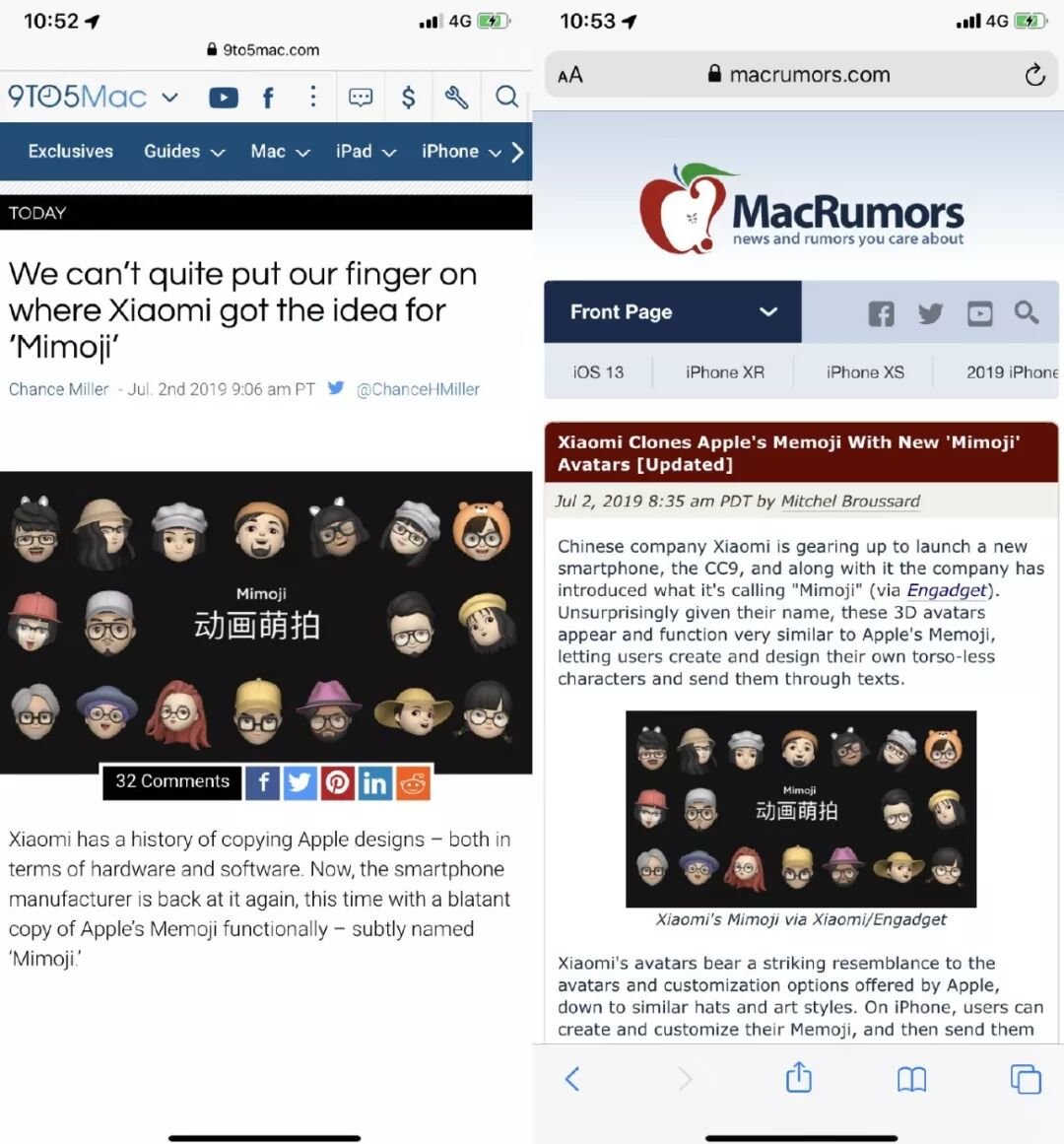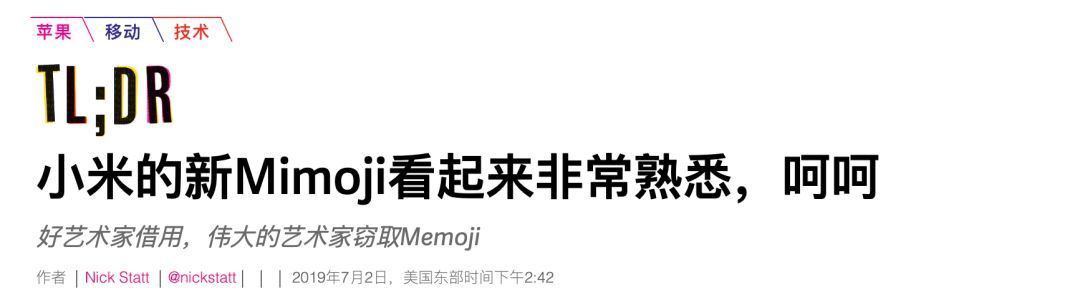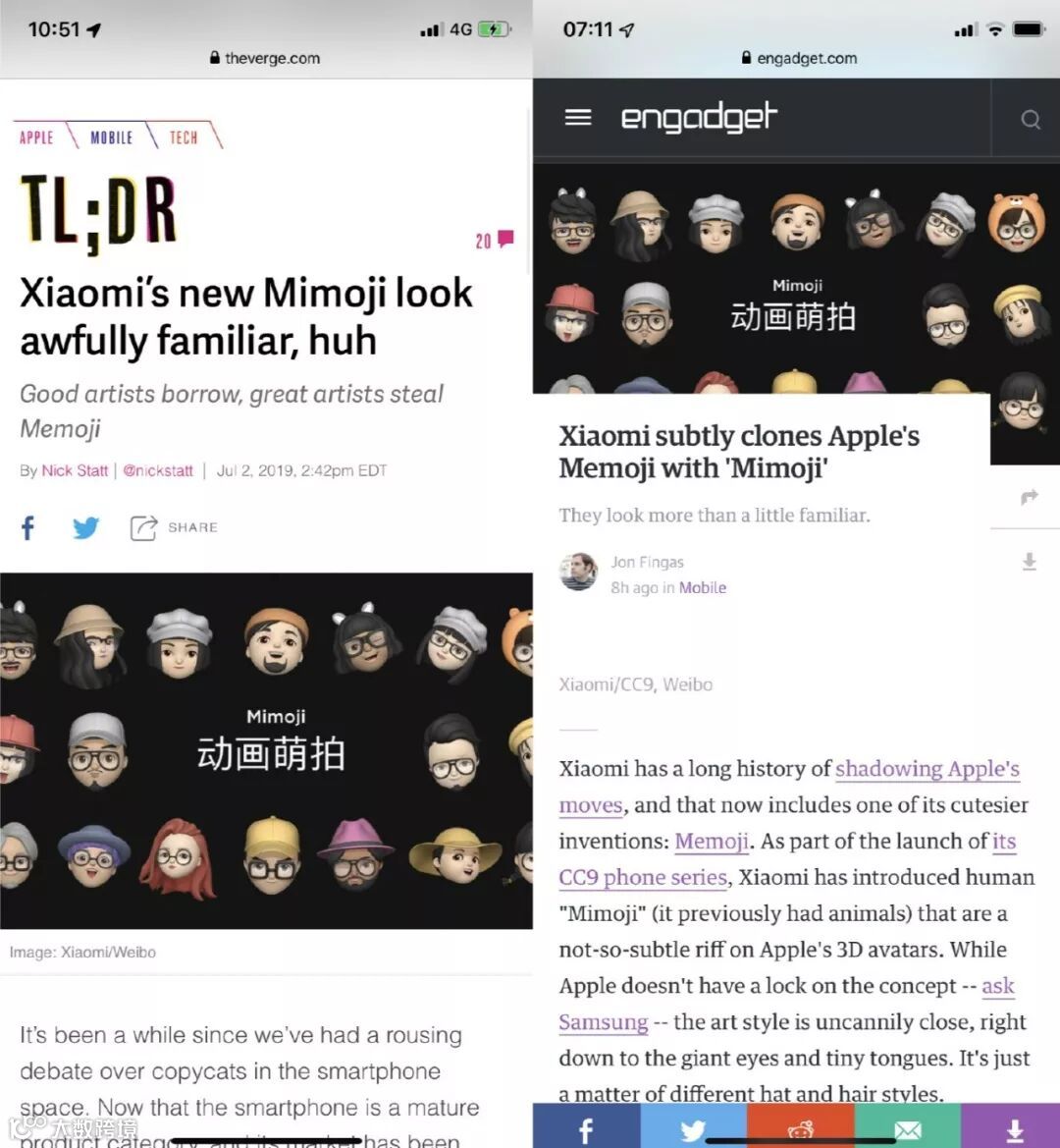 小米CC9系列发布后昨晚结束后,外媒首先关注的还是 小米的萌拍Mimoji和苹果Memoji相似一事,TheVerge、Engadget、9t05mac、macrumors等科技网站均发表文章进行了吐槽。。。