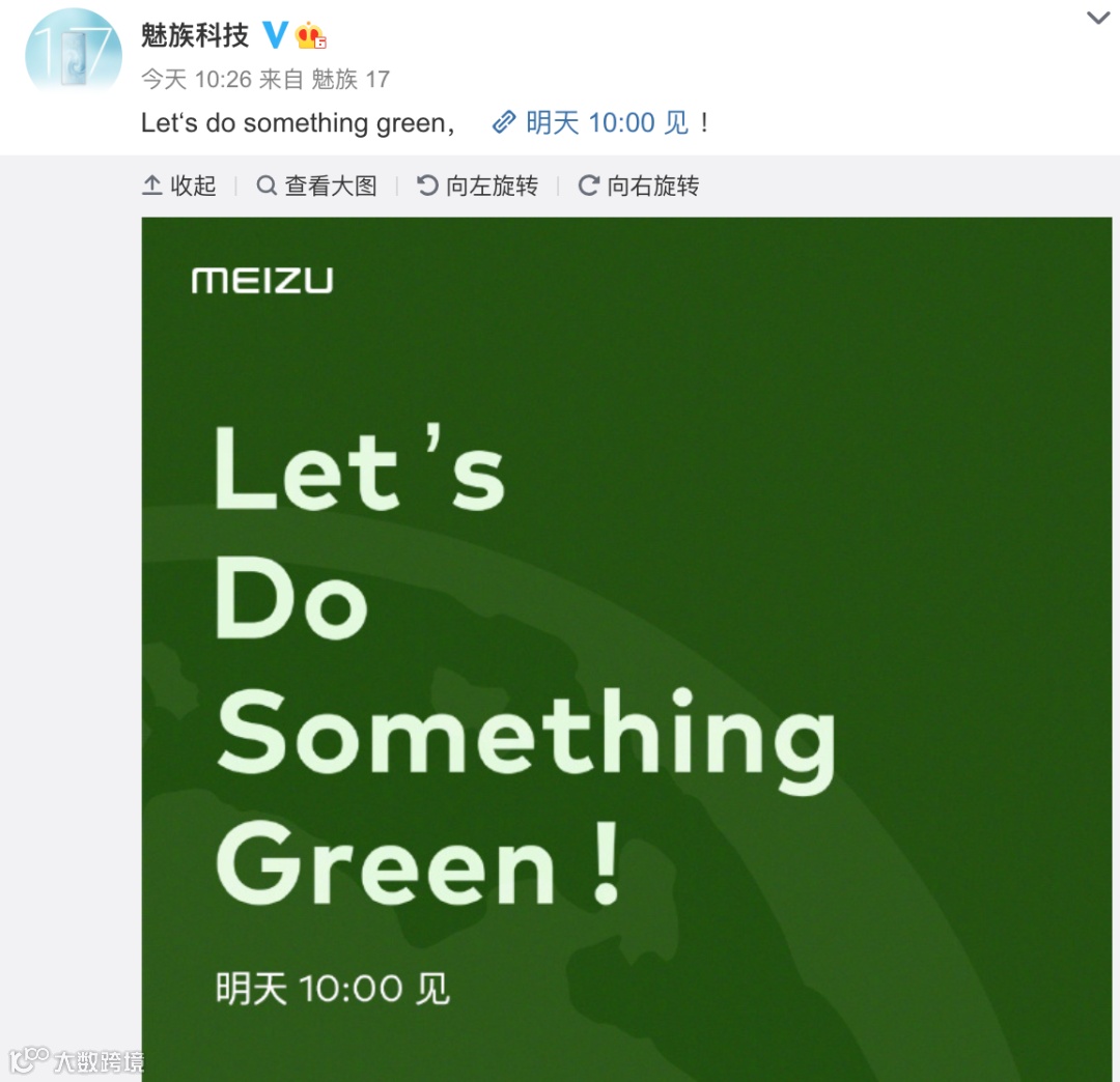 今天上午,魅族科技突然预热什么事件,表示将于明天上午10点,做一些“绿色”的事情。