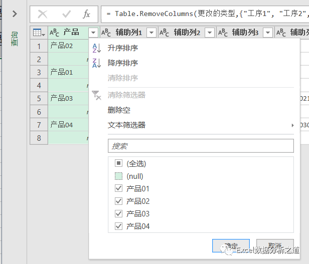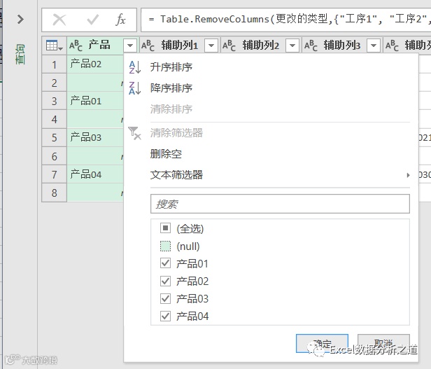 以包括辅助列在内的数据区域做Power Query,如下图: