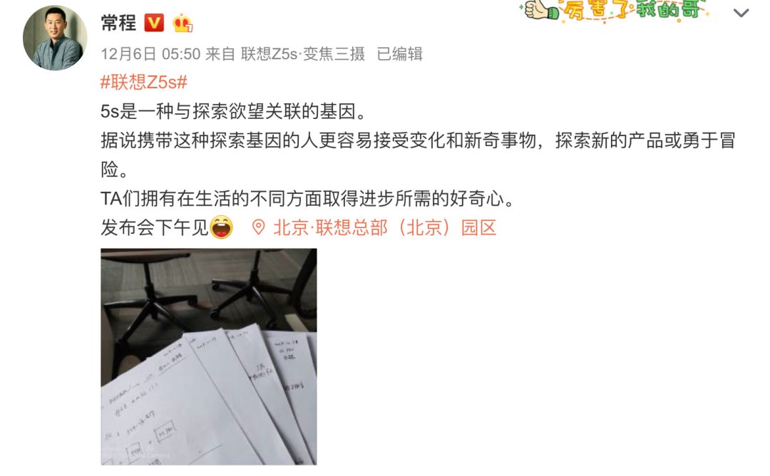 此前华为官宣12月17发布Nova 4,三星官宣12月10发布A8s,这两款都是挖孔屏,一直给人错觉要首发挖孔截胡华为三星的联想Z5s,常程之前宣布12月6日揭晓,也就是昨天,然后...今儿突然想起来去看,原来只是内部发布...