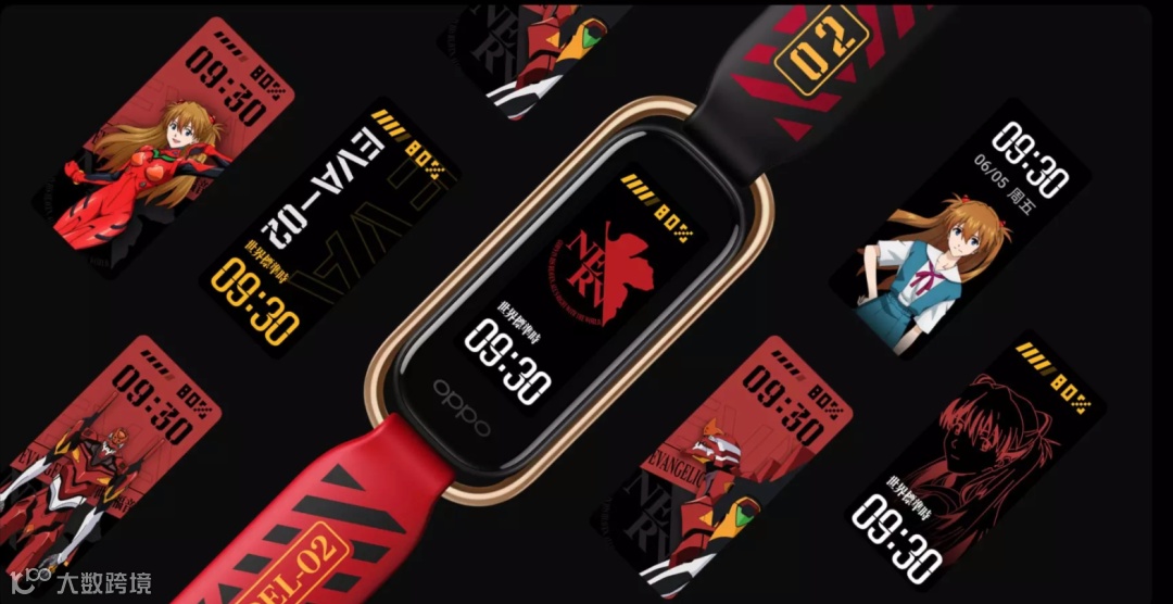 其中OPPO手环EVA限定版售价299元,以EVA的明日香为主要设计元素,除了主题外,腕带表盘等也有定制,其也是OPPO联名EVA系列产品中目前唯一没正式开售的产品,但其已经开启预约。只是有些意外的是,数码产品圈除了OPPO联名EVA外,小米手环5、卡西欧手表等也和EVA展开了合作。