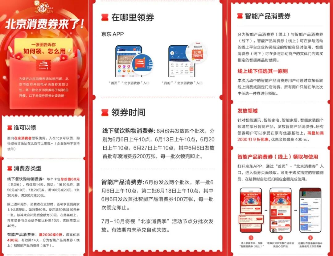 这里再简单回顾下北京消费券和必胜客优惠券怎么领,只要人在北京,即可通过京东APP搜索“北京消费券”领取,下一波「满2000元可享受9折智能消费券」发放时间为6月18日上午10点,(亲测如果你当前地理位置不在北京是无法领取的)