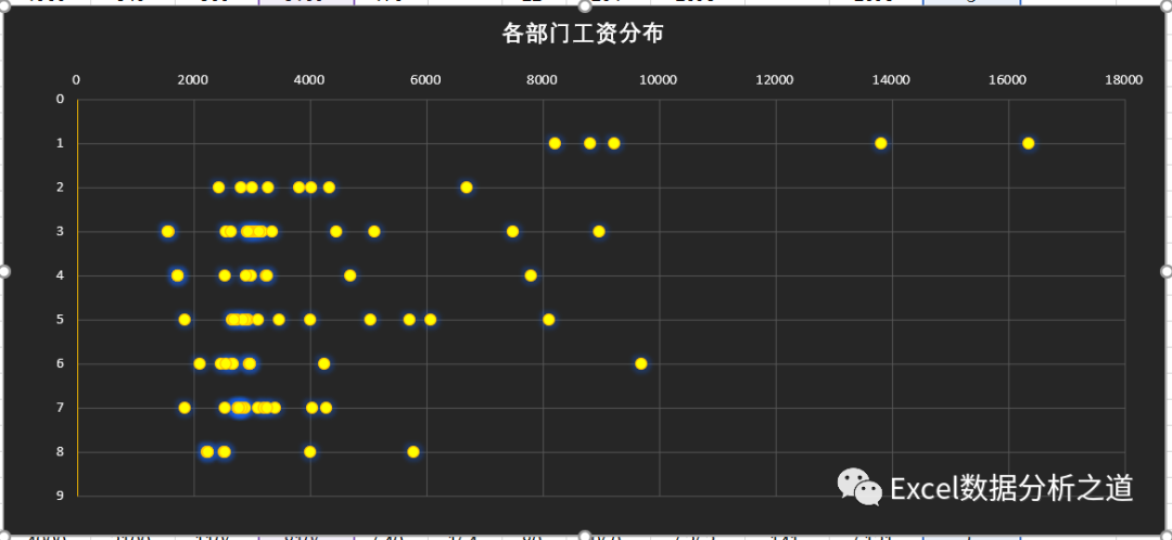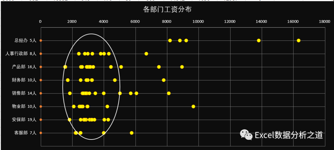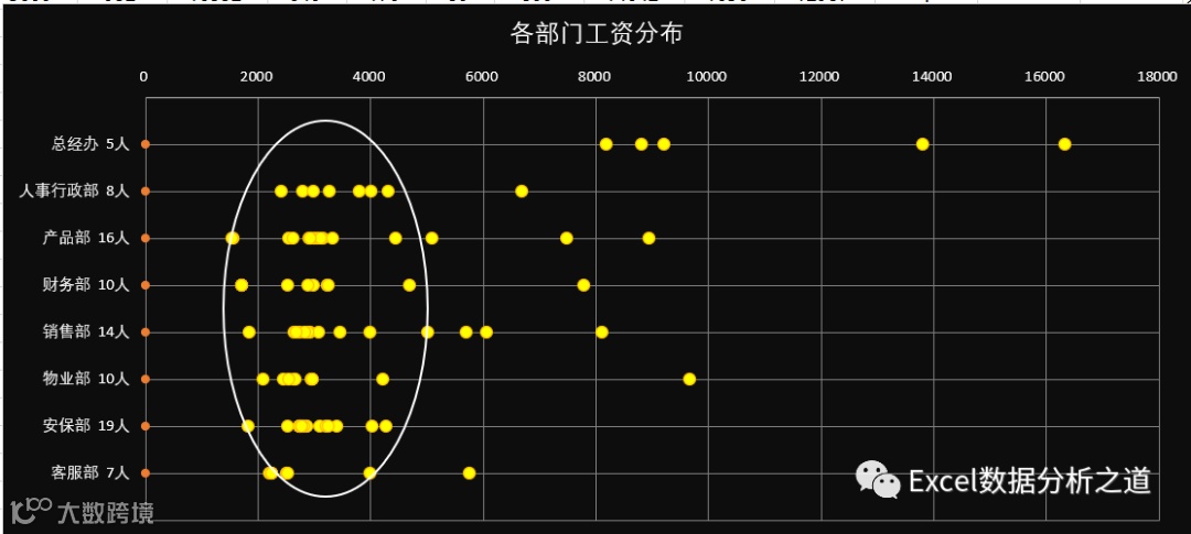 一个学生说,韩老师,我每年都要扒拉半天数,要了解公司各个部门的工资分析分布,一些重要岗位的工资分布,看看是否合理,是否需要调整工资。韩老师,有没有一个直观的图表来让我一目了然发现问题?